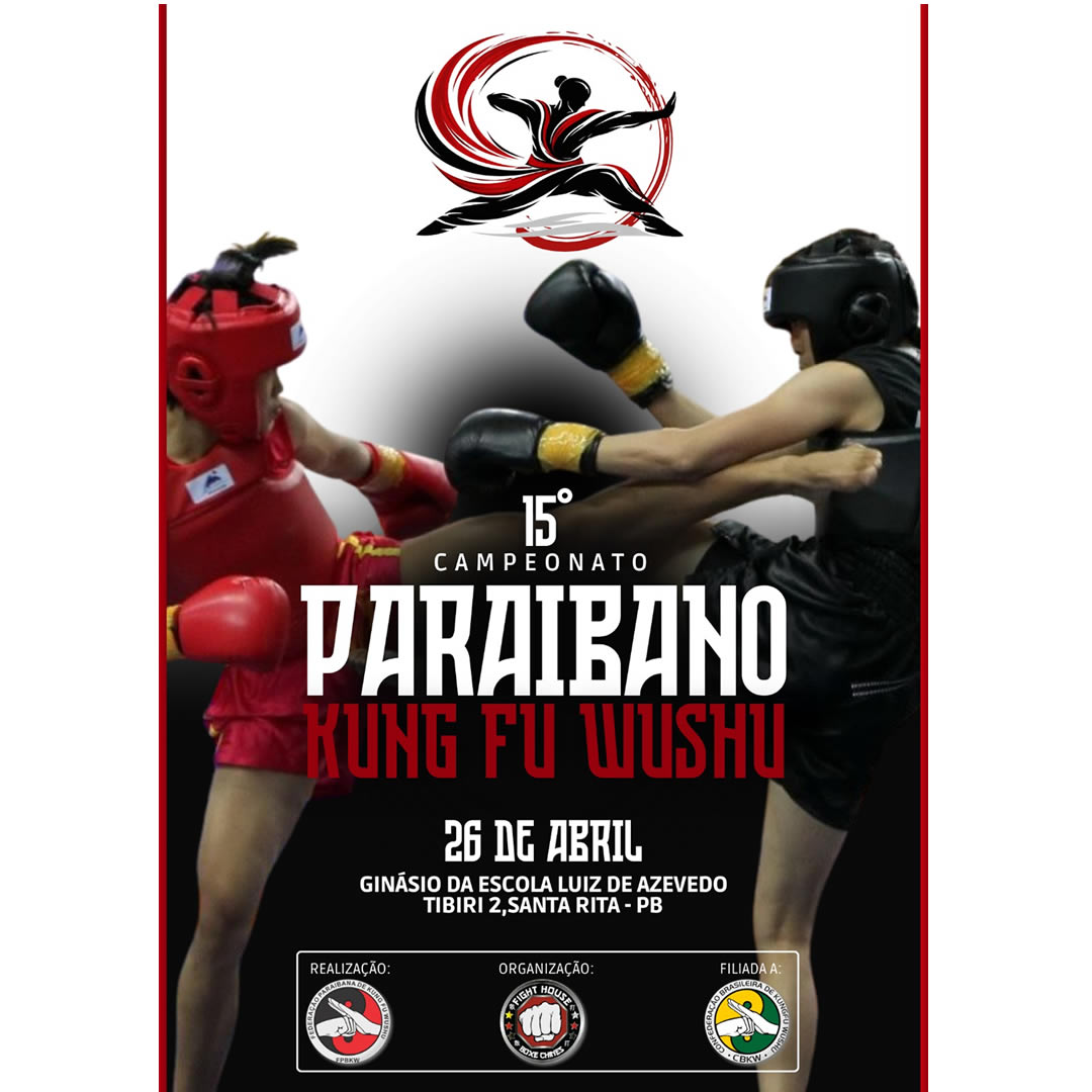 / Prezados membros e amigos da Federação Paraibana de Kung Fu Wushu, Informamos que o 15º Campeonato Paraibano de Kung Fu Wushu acontecerá em 26 de Abril de 2026. O evento será realizado na cidade de Santa Rita, em Tibiri, e promete ser um grande encontro esportivo e cultural, reunindo atletas e entusiastas de todo o estado. É com grande entusiasmo que convidamos a todos a participarem, seja como atletas, seja como visitantes, prestigiando e fortalecendo ainda mais o Kung Fu Wushu paraibano. As inscrições já estão abertas e podem ser feitas através do link disponível na página oficial da FPBKW. Diretoria FPBKW.